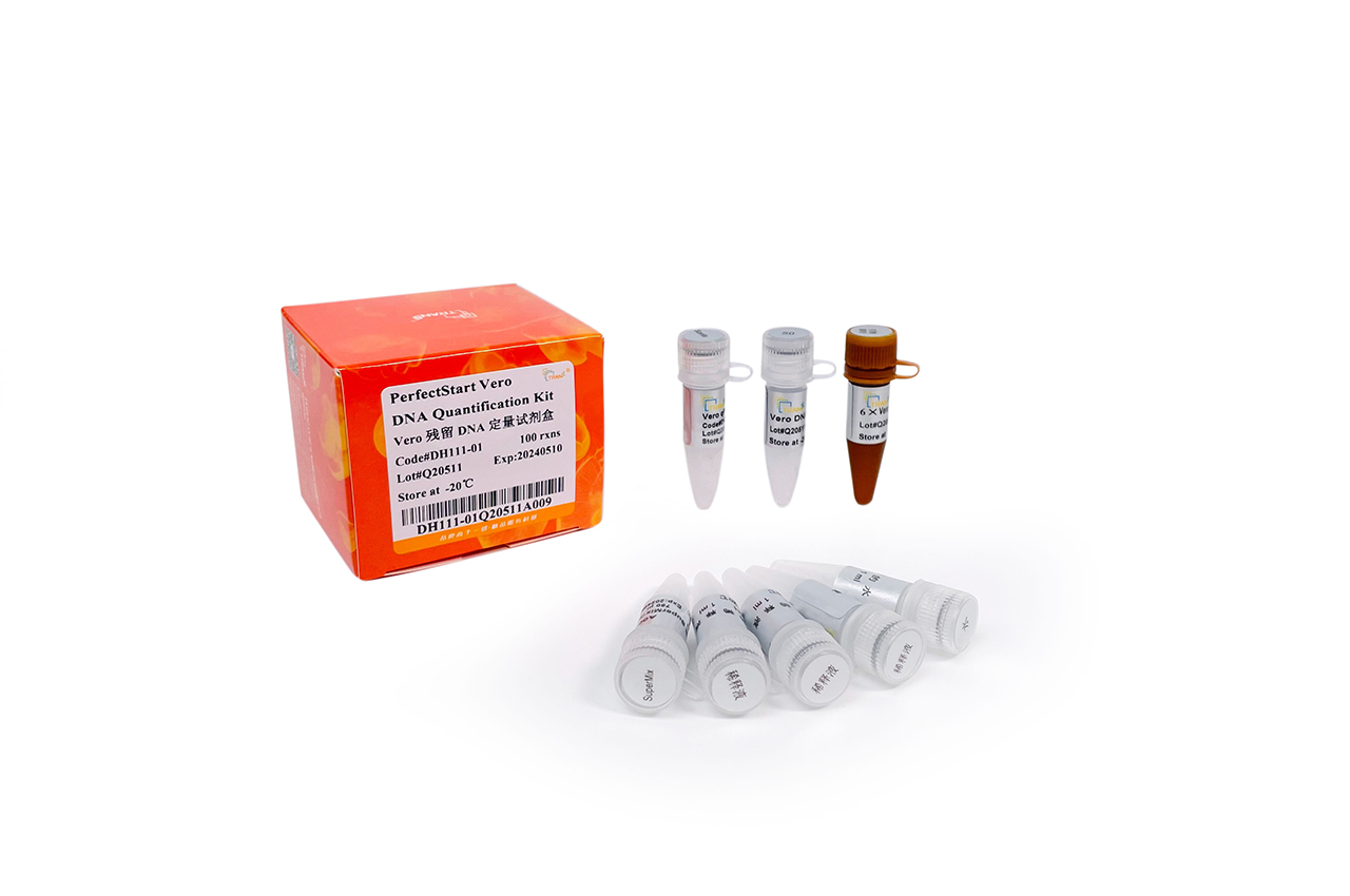 本產(chǎn)品原理為利用在PCR體系中加入熒光探針 (TaqMan或Molecular Beacon等),擴(kuò)增過程中其熒光量與擴(kuò)增產(chǎn)物量成正比,通過熒光量的檢測(cè)測(cè)定樣品核酸量。本產(chǎn)品中的Vero qPCR SuperMix (2×)含PerfectStart Taq熱啟動(dòng)酶 (利用3種單克隆抗體與Taq DNA Polymerase高效結(jié)合,有效地封閉了DNA聚合酶活性,阻止了低溫下的非特異性擴(kuò)增)、針對(duì)Vero細(xì)胞DNA檢測(cè)特殊優(yōu)化的qPCR反應(yīng)緩沖液、dNTPs、PCR增強(qiáng)劑、穩(wěn)定劑。此外,本反應(yīng)液引入了dUTP/UDG系統(tǒng),可在反轉(zhuǎn)錄前降解含U的ssDNA和dsDNA,消除由PCR產(chǎn)物導(dǎo)致的交叉污染。