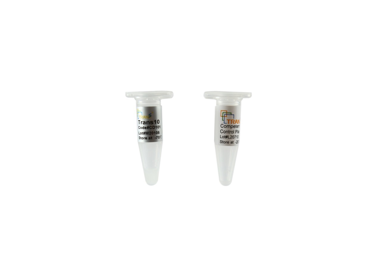Trans10化學感受態(tài)細胞經特殊工藝制作,可用于DNA的化學轉化。使用pUC19質粒DNA檢測,轉化效率可達108cfu/μg DNA以上。細胞具有硫酸鏈霉素(StrR)抗性。