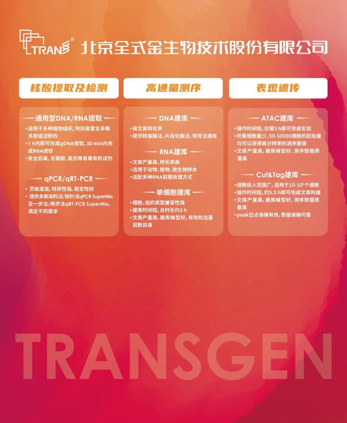 全式金生物一直秉持“品質(zhì)高于一切,精品服務(wù)客戶”的理念,提供高品質(zhì)的產(chǎn)品與服務(wù)。一路走來,感謝廣大客戶的支持與厚愛。未來我們將繼續(xù)提供高品質(zhì)的產(chǎn)品,服務(wù)于生命科學(xué)領(lǐng)域。