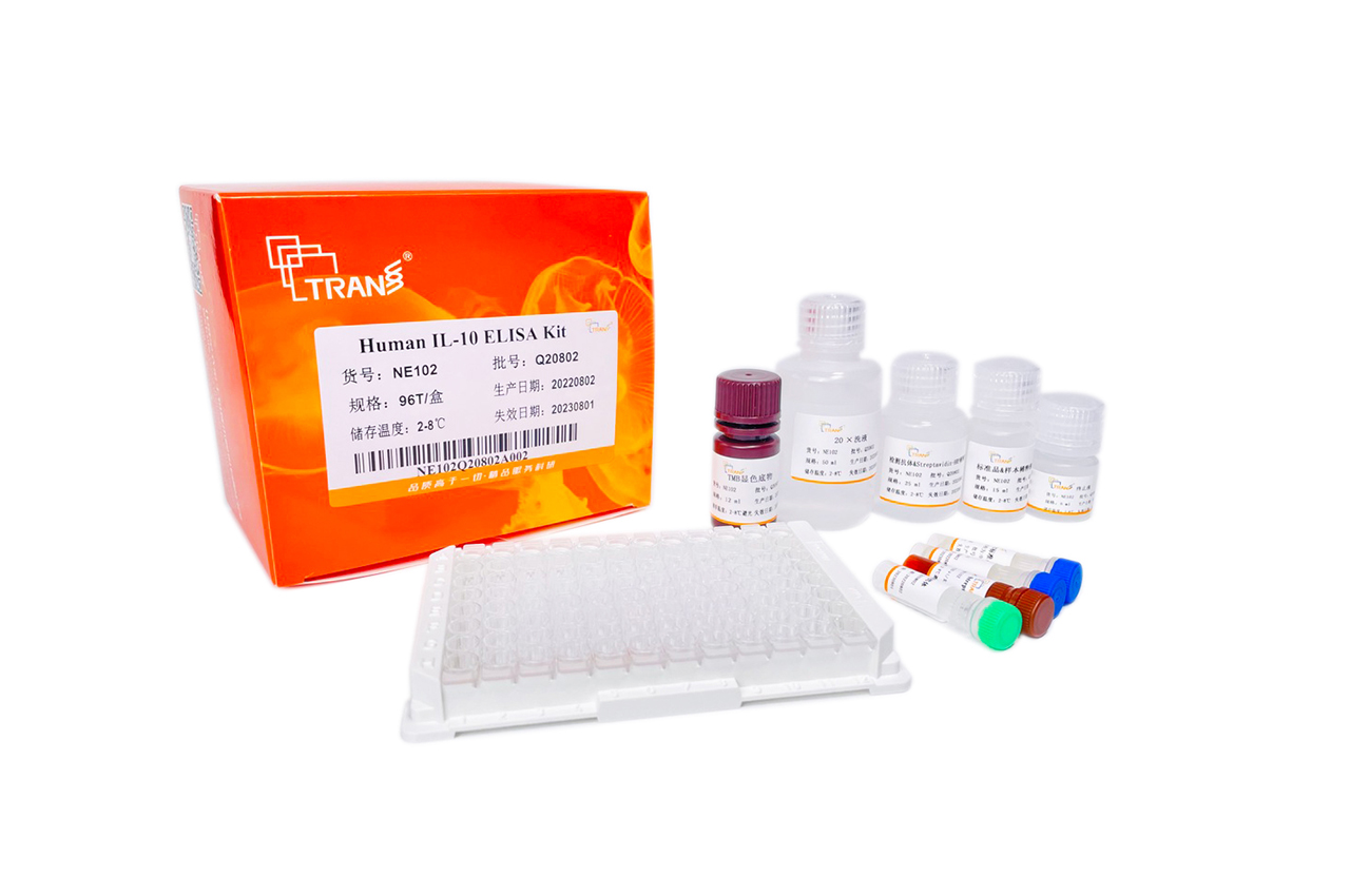 本試劑盒采用雙抗體夾心ELISA法定量測定人血清、血漿和細(xì)胞培養(yǎng)上清中的IL-10含量。本試劑盒采用高親和力的抗人IL-10抗體預(yù)包被酶標(biāo)板,將標(biāo)準(zhǔn)品/待測樣本加入微板孔中,經(jīng)過孵育后樣本中存在的IL-10會與酶標(biāo)板上的預(yù)包被抗體特異性結(jié)合。洗滌去除未結(jié)合物后,將生物素標(biāo)記的抗人IL-10檢測抗體加入微板孔中,再次孵育后檢測抗體會與錨定在酶標(biāo)板上的IL-10特異性結(jié)合。隨后,將辣根過氧化物酶標(biāo)記的鏈霉親和素(Streptavidin-HRP)加至微孔板中并孵育,通過檢測抗體上的生物素和鏈霉親和素發(fā)生的高強(qiáng)度非共價結(jié)合,形成“包被抗體-人IL-10蛋白-檢測抗體-Streptavidin-HRP”免疫復(fù)合物。再次洗滌后,將顯色底物TMB加至微板孔中,HRP會催化TMB底物生成藍(lán)色產(chǎn)物,顏色反應(yīng)的深淺將與樣本中IL-10的濃度成正相關(guān)。而后加入終止液終止反應(yīng),在450 nm波長(參考波長570 - 630 nm)處測定吸光度值。通過繪制標(biāo)準(zhǔn)曲線,由樣本吸光度值可計算出樣本中所含IL-10濃度。本試劑盒特異性強(qiáng)、檢測靈敏度高,同時操作更加便捷。
