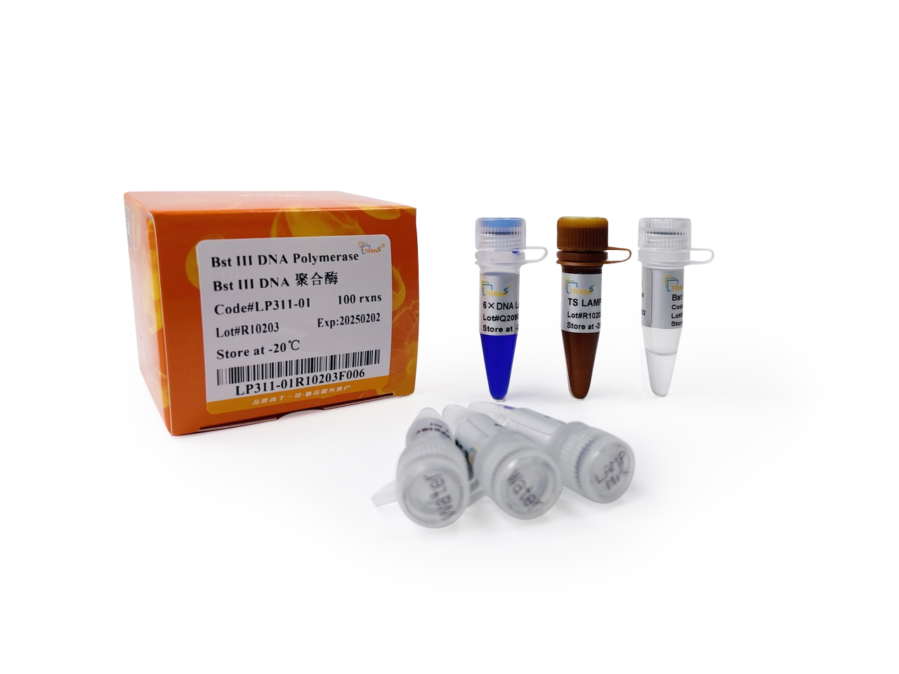 本產(chǎn)品包含Bst III DNA聚合酶、5×LAMP Reaction Mix、熒光染料TS LAMP Green,只需自備模板、引物。其中Bst III為Bst II DNA聚合酶的升級版,可以進(jìn)行以DNA或RNA為模板的LAMP反應(yīng),用于RT-LAMP反應(yīng)時(shí)不建議再加入反轉(zhuǎn)錄酶。5×LAMP Reaction Mix為優(yōu)化的預(yù)混反應(yīng)液,已包含反應(yīng)所需的MgSO4、dNTPs等組分,無需另外加入。