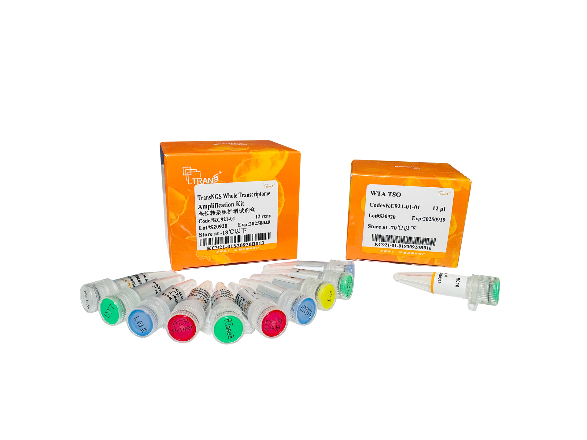TransNGS? Whole Transcriptome Amplification Kit是一款能夠獲得單細(xì)胞全長(zhǎng)cDNA擴(kuò)增產(chǎn)物的試劑盒,適用于1-105個(gè)細(xì)胞或10 pg-100 ng總RNA的全長(zhǎng)轉(zhuǎn)錄組的擴(kuò)增建庫(kù)。該試劑盒以WTA Oligo(dT)為逆轉(zhuǎn)錄引物,并應(yīng)用合成效率高、且具有模板置換活性的逆轉(zhuǎn)錄酶在cDNA的3'端添加一段特殊序列,從而得到全長(zhǎng)cDNA產(chǎn)物。該試劑盒可兼容多種細(xì)胞和組織類型,適用于RNA含量各異的細(xì)胞材料。