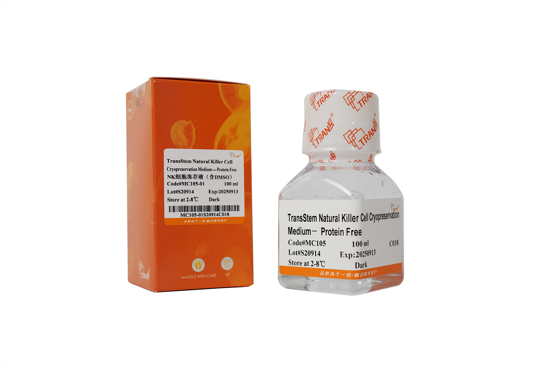TransStem? Natural Killer Cell Cryopreservation Medium—Protein Free 是一款專為NK細(xì)胞設(shè)計的化學(xué)成分明確、不含血清、不含蛋白的即用型凍存液。該產(chǎn)品適用于外周血和臍帶血來源NK細(xì)胞的長期穩(wěn)定凍存,復(fù)蘇后也可有效防止細(xì)胞延遲性死亡的發(fā)生。